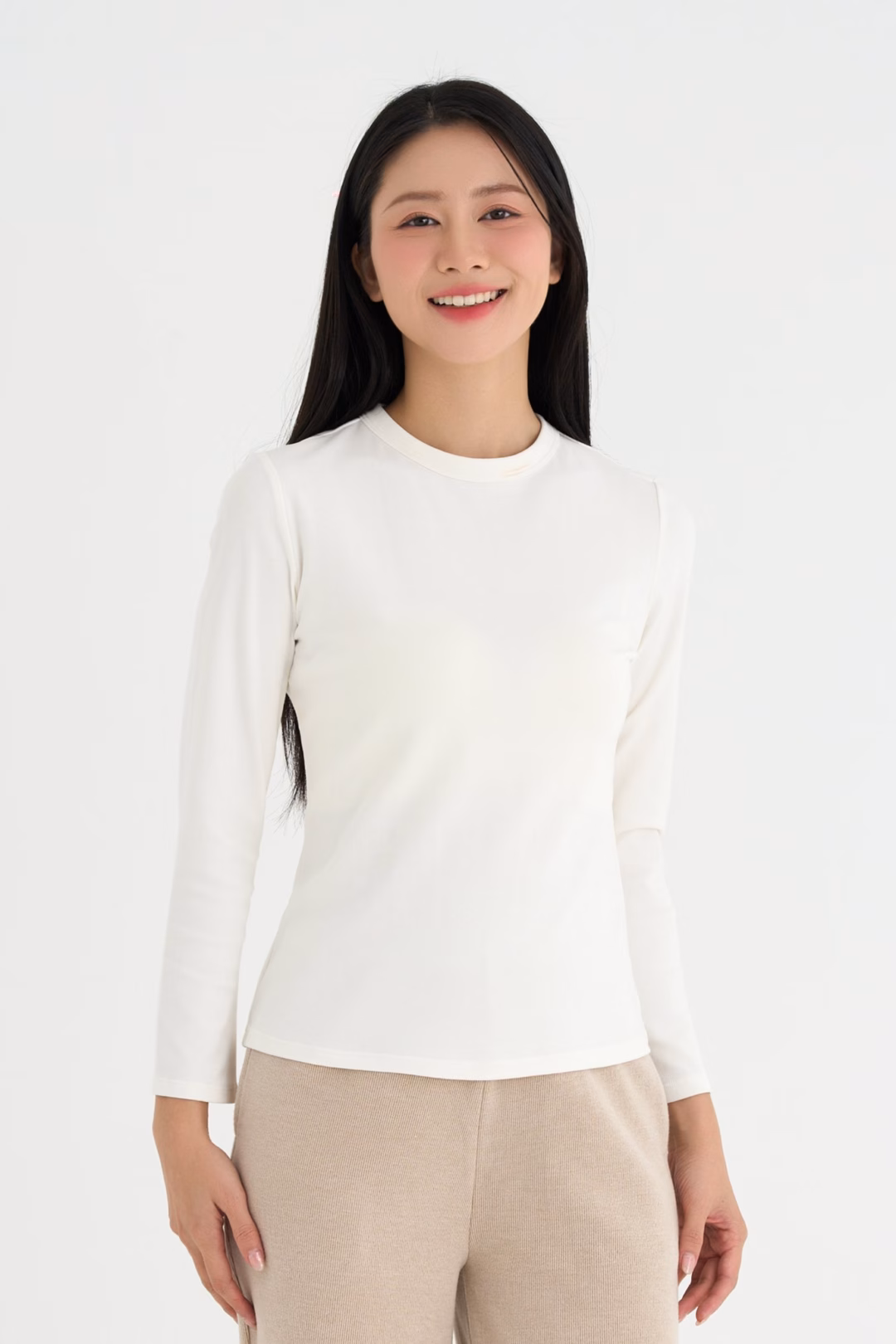 Trải nghiệm với A106 Áo thun nữ tay dài basic chất vải thun tăm mềm, mịn và co giãn 4 chiều