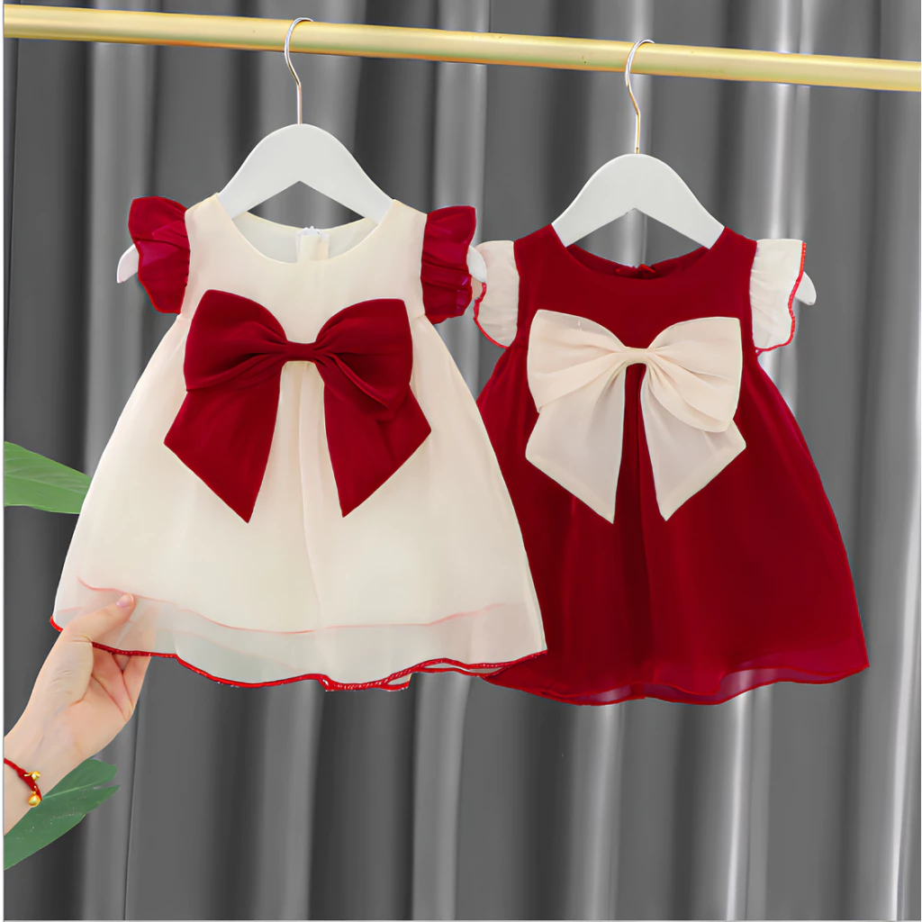 🔥 (6-16kg)Đầm dễ thương đính nơ đỏ trắng cho bé gái siêu xinh đi chơi, đi tiệc đang giảm giá!