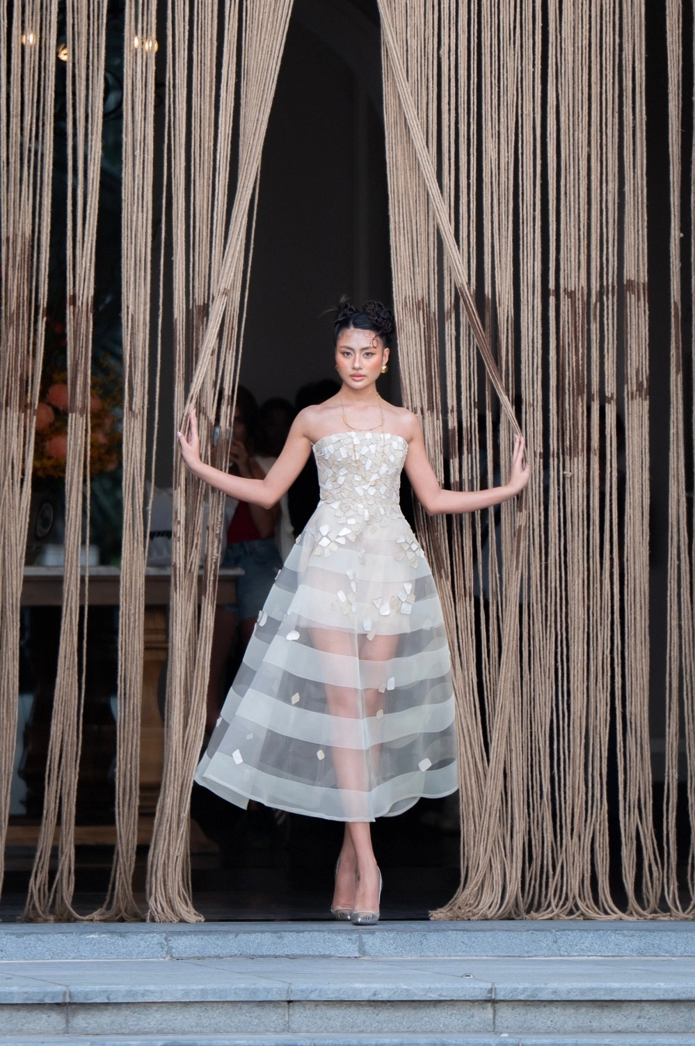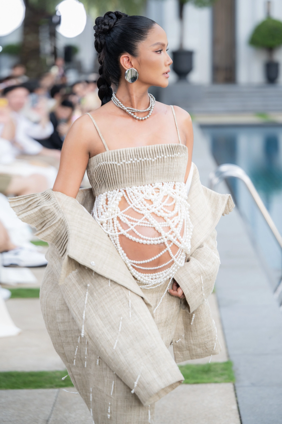 Trong sự kiện, H’Hen Niê đã trình diễn một bộ trang phục làm từ vải của người H’Mông, thể hiện sự tôn vinh bản sắc văn hóa địa phương. Cô diện một chiếc áo hai dây kết hợp với chân váy và khi bước ra sân khấu, cô đã tháo lớp áo khoác để lộ bụng bầu của mình. Phần ngoài của trang phục được phủ bằng những sợi dây ngọc trai, tạo nên một hình ảnh ấn tượng và thu hút sự chú ý của công chúng.