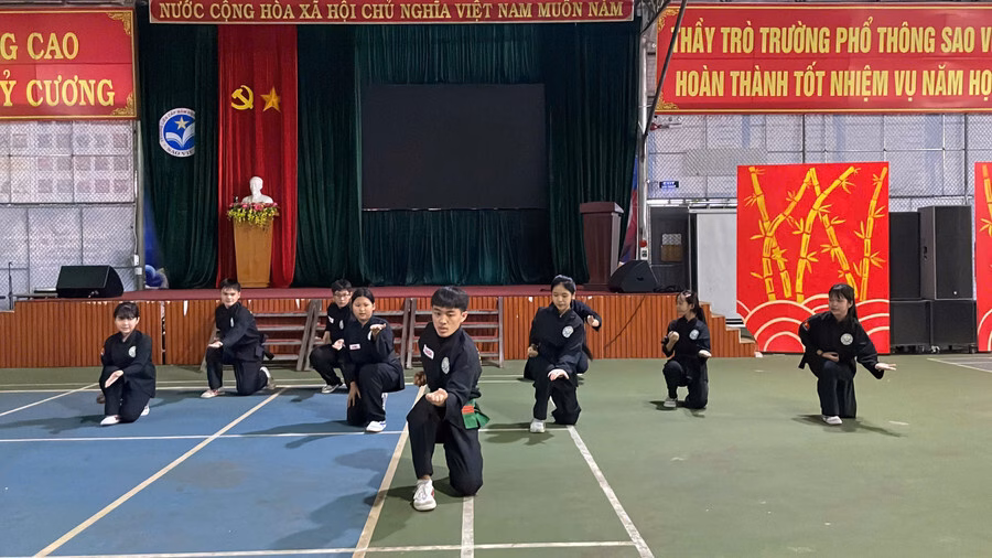 Ở khối tiểu học, các vận động viên đã tham gia thi đấu bài quyền căn bản với 27 động tác, trong khi đó, các học sinh ở khối THCS và THPT đã thể hiện kỹ năng của mình qua bài quyền căn bản với 36 động tác. Sự khác biệt này không chỉ phản ánh sự đa dạng trong chương trình giảng dạy của nhà trường mà còn giúp các em phát triển kỹ năng phù hợp với lứa tuổi.