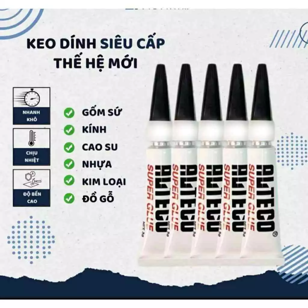 - Tính năng: Keo dán ALTECO có nhiều tính năng vượt trội như siêu dính, siêu nhanh và chống nước, giúp nó trở thành một lựa chọn lý tưởng cho nhiều người dùng.