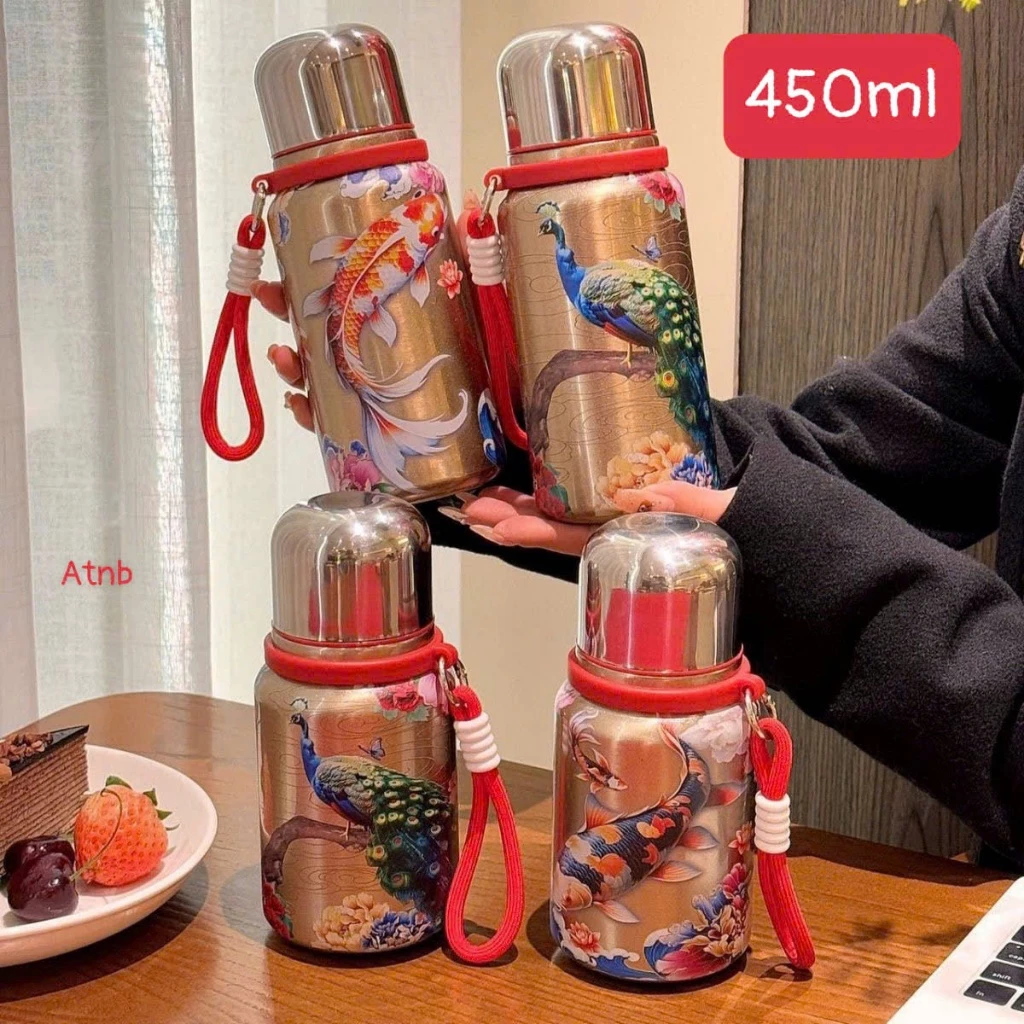 🔥 Bình giữ nhiệt 450ml lõi inox 316, Kèm Họa Tiết Hoa Văn Cực Đẹp, Có Dây Quai Sách Tiện Lợi đang giảm giá!