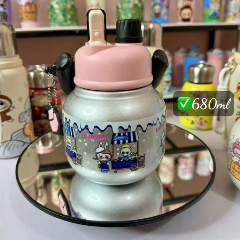 🔥 Bình giữ nhiệt có ống hút 680ml inox 316 in hoạ tiết labubu có lõi lọc trà ,có quai xách tiện lợi đang giảm giá!