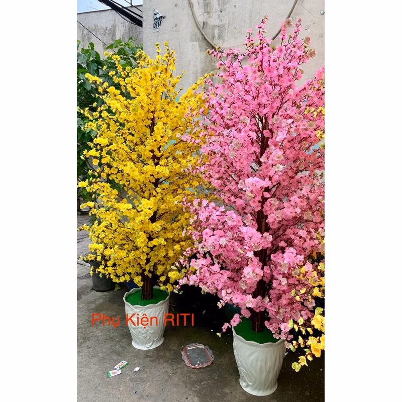 🔥 Cây mai giả, cây đào giả 1m4, 1m6, 1m8, 2m, 2m2 trang trí tết, lễ hội làm theo yêu cầu- cây bao gồm chậu đang giảm giá!