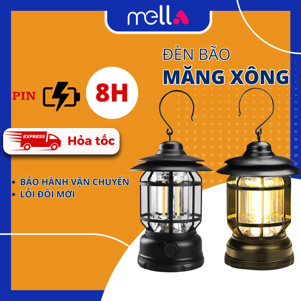 🔥 Đèn Bão Măng Xông, Đèn Cắm Trại, Đèn Bão Tích Điện 6-8 Tiếng Công Suất 5W Tiện Lợi đang giảm giá!
