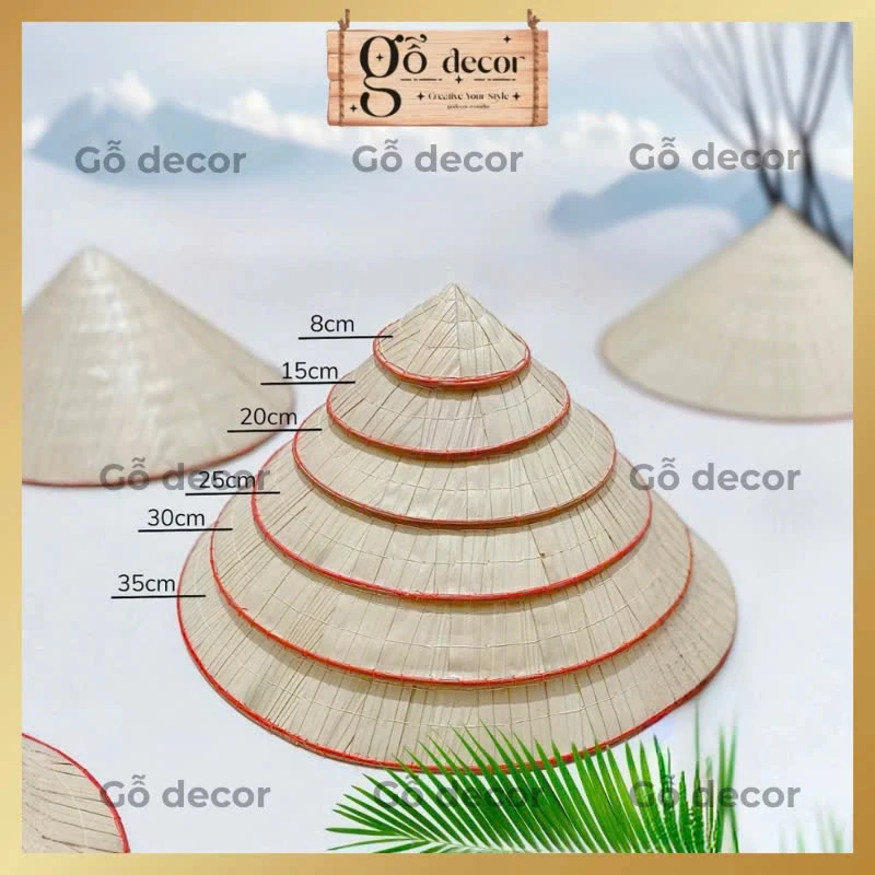 🔥 (HỎA TỐC) Nón lá mini viền đỏ phụ kiện decor, trang trí nhà cửa, sự kiện, đủ size 8-35cm hcm chính hãng đang giảm giá!
