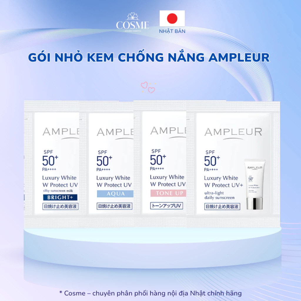 🔥 Kem chống nắng mini Ampleur chính hãng Nhật Bản gói 1g – Dưỡng ẩm, nâng tông, chống nắng UV+, Tone up, Aqua, Bright + đang giảm giá!