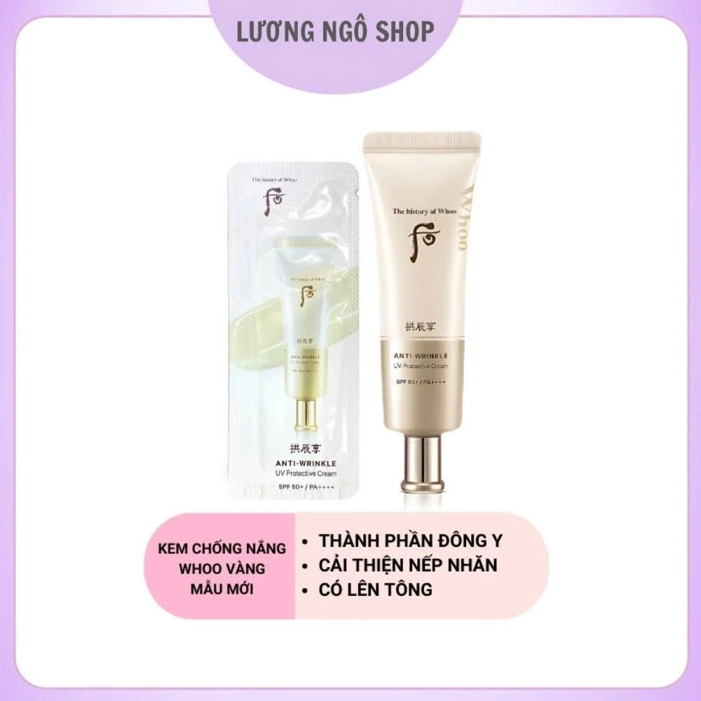 🔥 Combo gói kem chống nắng chống nhăn Whoo vàng – WHOO JIN HAE YOON WRINKLE SUN CREAM SPF50+/PA+++ đang giảm giá!