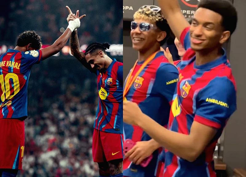 Sau tiếng còi cuối cùng, mọi ánh mắt đổ dồn vào phòng thay đồ của Barcelona. Lamine Yamal, thần đồng 18 tuổi, đã khoe phong cách “hoá cơ trưởng” – mặc áo khoác phi công, cùng đồng đội nhảy múa, hò reo và đăng video lên kênh chính thức của câu lạc bộ với tiêu đề “DJ Lamine Yamal”.