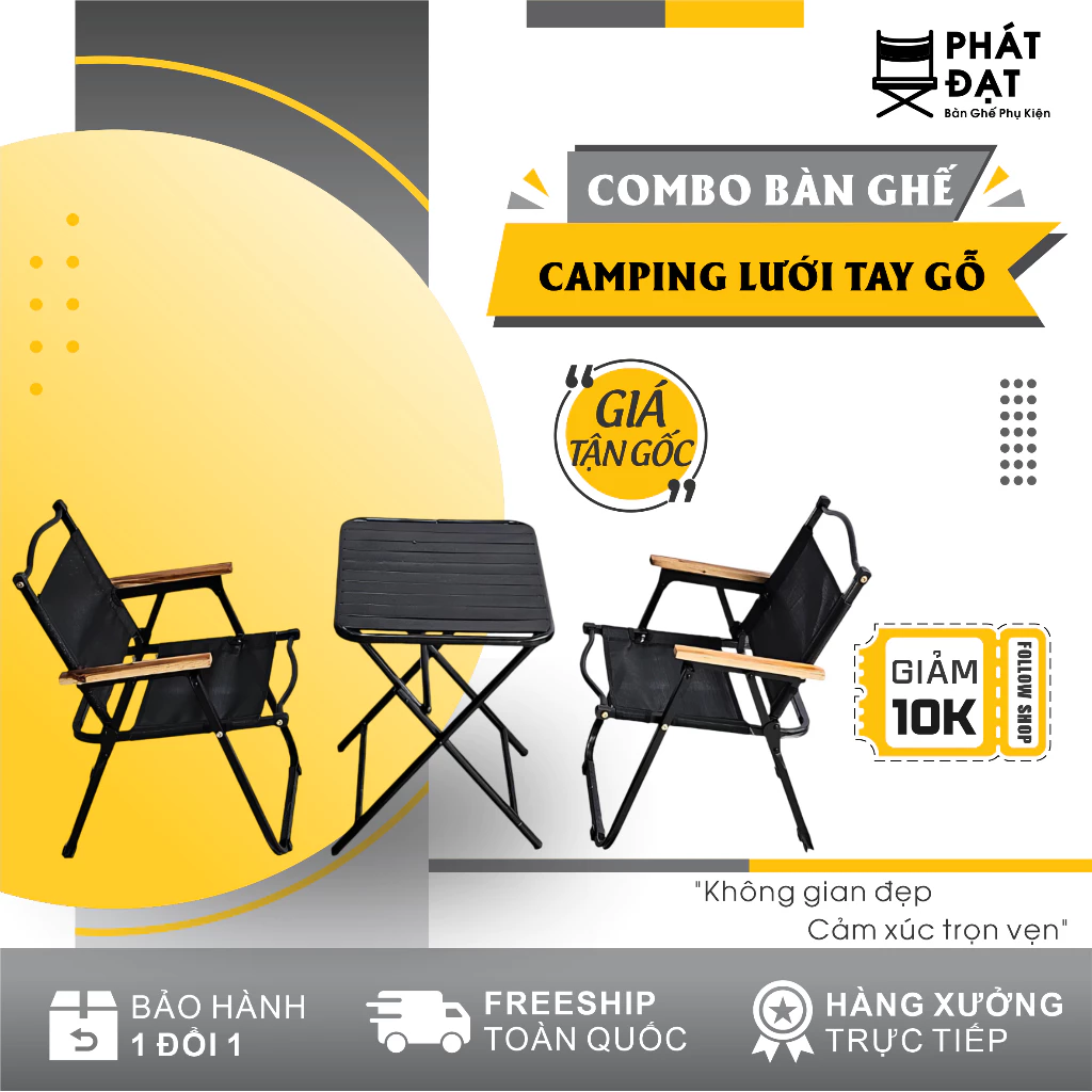 🔥 [COMBO 2 GHẾ + 1 BÀN] Combo Bàn Ghế Camping Gấp Gọn Tay Vịn Gỗ Gấp Gọn Sơn Tĩnh Điện, Cafe, Du Lịch – Giá Xưởng đang giảm giá!