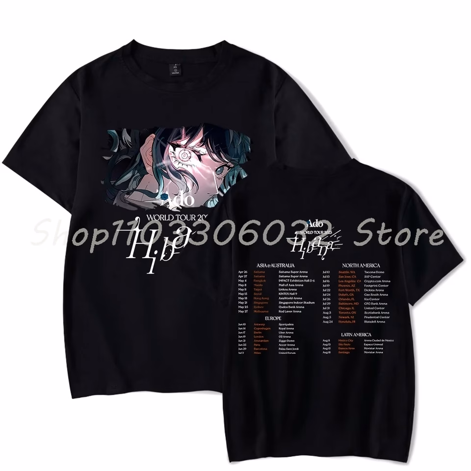 🔥 2025 Mới ADO Hibana World Tour Áo thun ngắn tay cổ tròn đen trắng đang giảm giá!