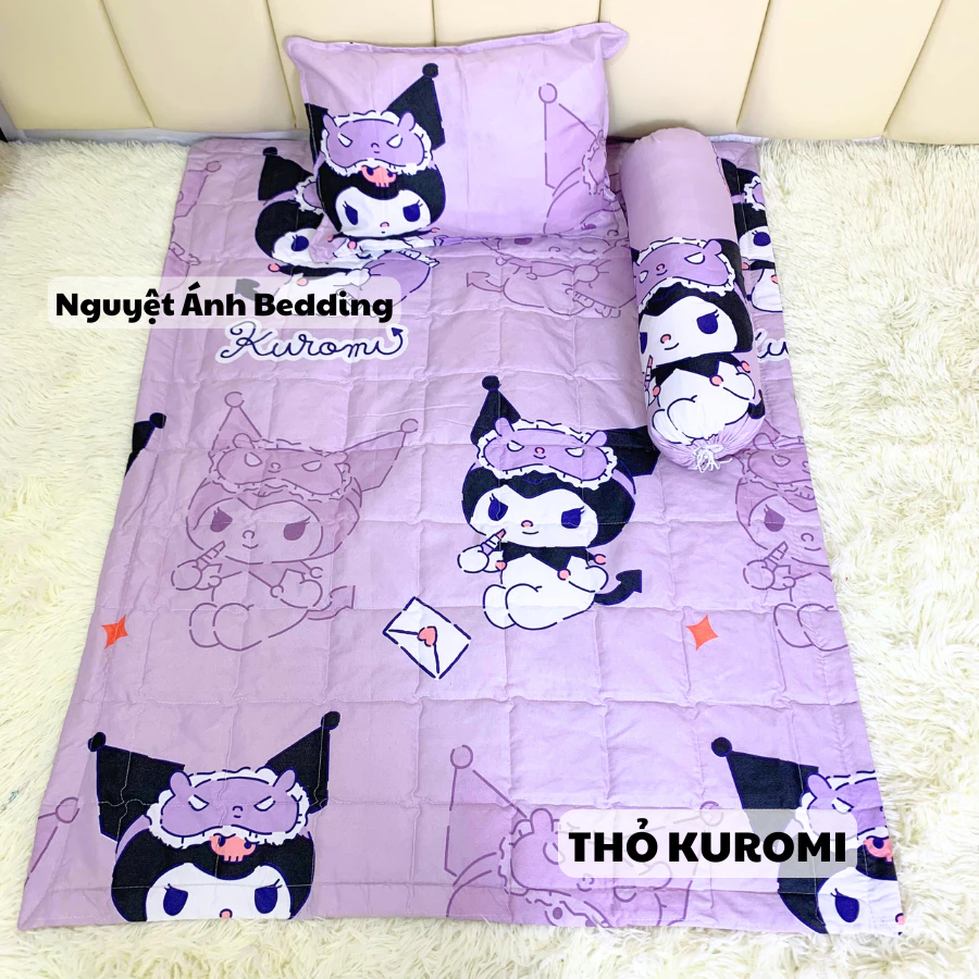 🔥 Combo 1 nệm nằm +1 chăn đắp +1 gối đầu + 1 gối ôm (gối kèm ruột bông gòn) cho bé mầm non [Thỏ Kuromi] đang giảm giá!