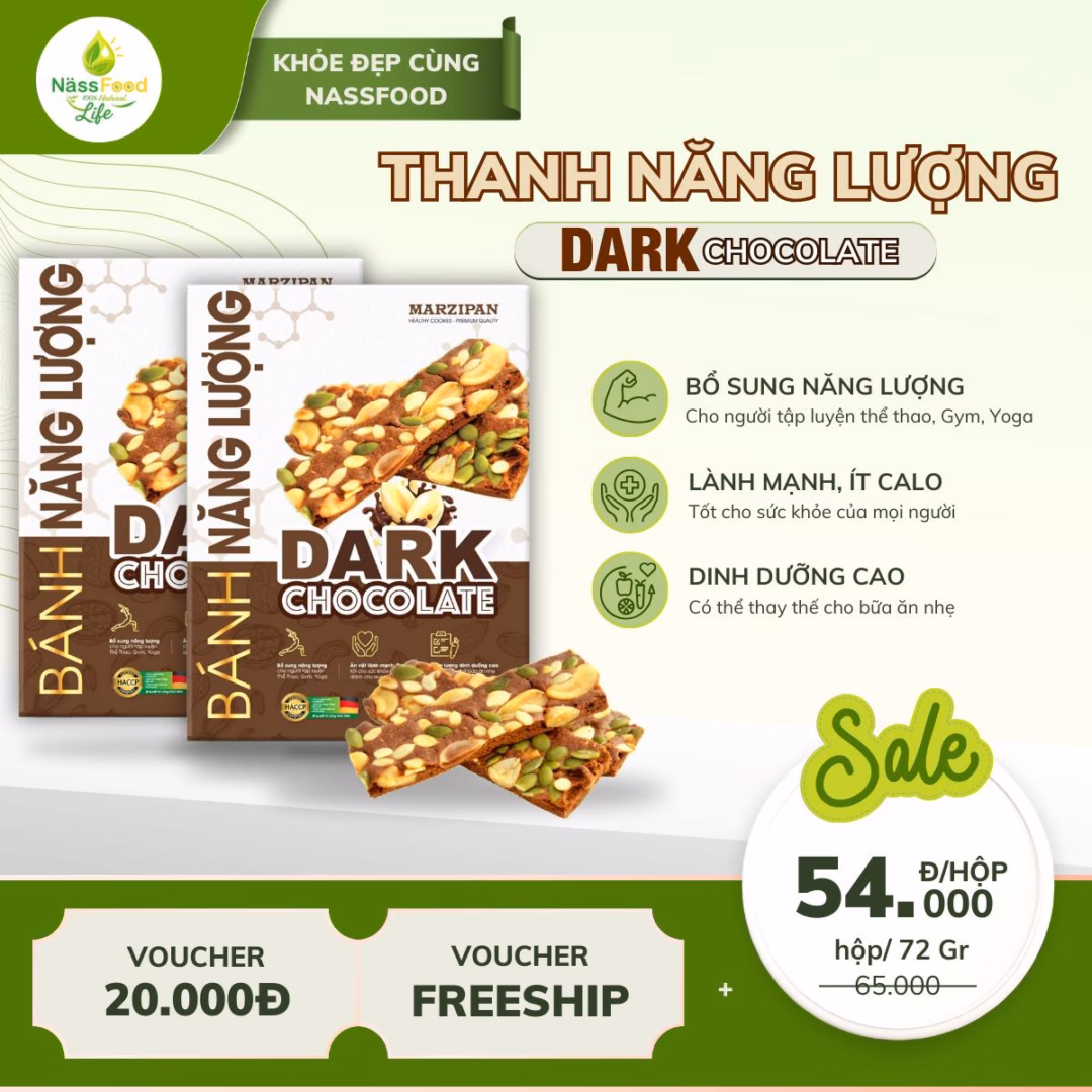Sau khi trải qua những sai lầm khi mua thanh bánh năng lượng, tôi đã tìm hiểu và phát hiện ra sản phẩm thanh bánh năng lượng Marzipan Dark Chocolate Gừng Kết Hợp Hạt Dinh Dưỡng từ Nassfood. Sản phẩm này không chỉ mang lại hương vị thơm ngon mà còn cung cấp một lượng dinh dưỡng đáng kể.